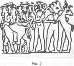 Указание на то, что процесс сотворения человека предполагал генетические манипуляции, содержится во второй главе Книги Бытия: «И создал Господь Бог человека из праха земного, и вдунул в лице его дыхание жизни, и стал человек душою живою». В «Мифе об Атрахасисе» и других месопотамских текстах описывается более сложный процесс создания человека. Это был творческий процесс, совершенствовавшийся методом проб и ошибок, пока вся процедура не была окончательно отработана и Энки с Нинмах не получили желаемый результат (за ту роль, которую Нинмах сыграла в сотворении человека, она получила титул НИН.ТИ, «госпожа жизни»). В лаборатории под названием Бит Шимти — «дом, где вдыхается ветер жизни» — «сущность» юноши-аннунака была соединена с яйцеклеткой самки гоминида. Оплодотворенную яйцеклетку имплантировали в матку одной из женщин-аннунаков. После напряженного ожидания на свет появилась «модель» человека, и Нинмах, высоко подняв новорожденного, торжествующе воскликнула: «Это я сотворила, мои создали руки!» На цилиндрических печатях шумерские художники изобразили этот кульминационный момент, когда Нинмах/Нинти поднимает новорожденного, чтобы все могли увидеть его (рис. 3). Таким образом, резьба на маленьком цилиндре из камня — это графическая запись первой встречи человека с божественным.