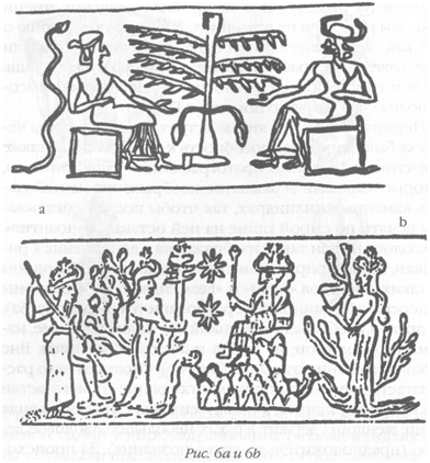 Исследуя двойное и даже тройное значение имени Энки, мы не можем не вспомнить библейскую историю о том, как скитавшиеся по пустыне израильтяне страдали от неизвестной болезни: эпидемия прекратилась лишь после того, как Моисей изготовил «медного змея» и высоко поднял его, взывая о помощи к Господу. Неудивительно, что вторая встреча с богами, когда человеку была дарована способность к размножению, также запечатлена древними «фотографами» — художниками, которые вырезали зеркальные изображения на небольших каменных цилиндрах, так чтобы после прокатывания печати по сырой глине на ней оставался «позитив». Археологи нашли такие изображения в дополнение к рисункам, иллюстрирующим сотворение Адама. На одном из таких рисунков «Адам» и «Ева» сидят по обе стороны от дерева, а за спиной Евы располагается змей (рис. 6а). На другом изображении великий бог сидит на холме, напоминающем трон; из холма выползают две змеи. Вне всякого сомнения, это Энки (рис. 6б). Справа от него располагается мужчина, причем отходящие от него ветви имеют форму пениса, а слева женщина с ветвями в виде вагин; женщина держит в руках небольшое плодовое дерево (предположительно древо познания). За происходящим наблюдает грозный бог, — скорее всего, это разгневанный Энлиль. Все эти тексты и изображения, подтверждающие библейский рассказ, рисуют подробную картину событий с узнаваемыми участниками — сагу о встречах человека с богами. Тем не менее ученые в большинстве своем отбрасывают эти свидетельства как «мифологию». Для них рассказ о событиях в Эдемском саду — просто миф, выдумка, действие которой разворачивается в несуществующем месте. Но что, если такой рай — сад с искусственно высаженными фруктовыми деревьями — действительно существовал в те незапамятные времена, когда в других местах Спросите любого, где был создан Адам, и вы наверняка услышите ответ: в Эдемском саду. Однако история человечества началась совсем в другом месте. Месопотамская легенда, впервые записанная шумерами, помещает первый этап сотворения человека в некое место «над Абзу» — к северу от золотых копей. После того как первые группы «смешанных» людей приступили к делу, для которого их создавали, — работе в золотых копях, — аннунаки из семи поселений в ЭДИНЕ тоже потребовали себе помощников. Жители юго-востока Африки возражали, и в результате разгорелся конфликт. В тексте, получившем название «Миф о мотыгах», рассказывается о том, что аннунаки из Э.ДИНА под предводительством Энлиля силой захватили часть «примитивных рабочих» и увезли в Эдем, где они должны были служить аннунакам. Другой текст, «Миф о скоте и хлебе», повествует, что, «когда с высот Небес на Землю велению Ану послушные, спустились аннунаки», на Земле еще не было ни съедобных растений, ни овец, ни коз. Аннунаки не насытились даже после того, как в «комнате творения» создали для себя пищу. Тогда: Ану, Энлиль, Энки и Нинмах Черноголовых создали, а после растения пышные на земле умножили.... в Э.ДИНЕ поместили их. Вопреки расхожему мнению, Библия рассказывает ту же историю. В Ветхом Завете последовательность сотворения мира (Бытие, глава 2) совпадает с той, что описана в «Энума элиш»: сначала были созданы небо и Земля, а потом человек (в Библии не указывается, где именно). Затем «насадил Господь Бог рай в Едеме на востоке» (от того места, где