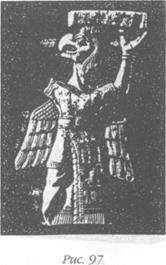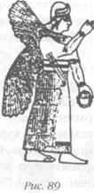 Современные ученые — вероятно, стремясь избежать религиозной окраски, — называют этих существ «духами-покровителями», но древние народы относили их к категории младших богов, считая их своего рода рядовыми, которые исполняют приказы «Великих Богов», считавшихся «Богами Неба и Земли». Изображение в виде крылатых существ указывало на их способность летать в небе, и в этом они были похожи на самих богов, и особенно крылатых — Уту/Шаимаша (рис. 89) и его сестру-близнеца Инанну/Иштар (рис. 90). Очевидна здесь и связь с «людьми-орлами» (см. рис. 16), которыми командовал Уту/Шамаш. С учетом этих обстоятельств слова Господа о том, что он носил сынов Израиля «на орлиных крыльях» воспринимается не просто как аллегория. Вспоминается также и легенда об Этане, которого по приказу Шамаша поднял в небо орел — или человек-орел.