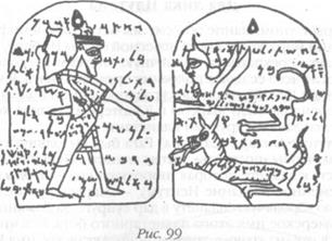 Встреча с целым войском таких существ описывается в тексте, известном как «Легенда о Нарамсине». Внук Саргона I (основателя аккадской династии) предпринял несколько военных походов — как утверждается в его анналах, по велению богов из клана Энлиля. Но как минимум в одном случае, когда оракулы указывали на необходимость прекращения войны, Нарамсин решил взять дело в свои руки. Поэтому против него боги — вероятно, по решению Шамаша — выставили войско «духов». Эти воины обликом были похожи на птиц, и боги выстроили для них город на равнине. Озадаченный появлением этих существ и их внешним видом, Нарамсин приказал одному из своих военачальников похитить «птицу» и проткнуть ее копьем. Если из нее потечет кровь, сказал царь, значит, это существо похоже на нас, людей. Если же крови не будет, значит, это демоны, созданные Энлилем. (Военачальник доложилНарамсину, что видел кровь, после чего царь приказал начинать наступление — и все его войско погибло.) Среди этих людей-птиц особое место занимает существо женского пола по имени Лилит (рис. 98). Ее имя можно перевести как «ночная» или «воющая», и согласно древним поверьям (некоторые считают их предрассудками) она занималась тем, что заманивала людей в смертельные ловушки и похищала новорожденных. Несмотря на то что в более поздних еврейских легендах ее называли первой женой Адама (ненавидевшей мужчин, поскольку ей предпочли Еву), более правдоподобной нам представляется гипотеза, что она была земной супругой злодея Зу (или АН.ЗУ, «небесного Зу»). В шумерской легенде, известной под названием «Инанна и дерево хулуппу», чудесное дерево служило домом как для злого птицеподобного Анзу, так и для «девы» Лилит. Когда дерево срубили, чтобы сделать мебель для Инанны и Шамаша, Анзу улетел в горы, а Лилит «в разорении бегством спасается». Со временем сами боги становились все более далекими и недоступными, и во всех несчастьях, болезнях и неудачах начали обвинять «демонов». Люди сочиняли заклинания, специальные молитвы к богам, призывающие отозвать злых духов, изготавливали амулеты (их носили на себе или прикрепляли к дверям), «священные слова» на которых могли отпугнуть изображенных на них демонов. Такая практика была широко распространена до начала христианской эпохи (рис. 99) и дожила до наших дней.