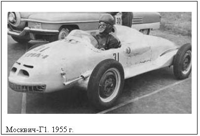 Сегодня детища АО "Москвич" называют по-разному: "ведро с болтами", "Космич", "корыто" и так далее. Для большинства старый добрый "четыреста двенадцатый" - наследство от дедушки, первый автомобиль, на котором оттачиваются навыки владения и управления железным конем. Да, бесспорно, сегодня "Москвич" - не передовик производства, последний серийный автомобиль москвичей - Москвич-2141 1986 года!!! А сколько новых разработок на том же ВАЗе, ГАЗе, УАЗе? Но так было не всегда. Сама мысль о том, что завод, существующий уже более четверти века (с 1930 года - КИМ (Комсомольский Интернационал Молодежи), с 1946 года - МЗМА (Московский Завод Малолитражных Автомобилей), с 1698 года - АЗЛК (Автомобильный Завод им. Ленинского Комсомола), сегодня - АО "Москвич") так и не сделал ничего путного кажется более чем сомнительной. Если на ГАЗ большое влияние оказали американцы (Ford), на ВАЗ - итальянцы (Fiat), то на "Москвич" - немцы. Ведь первый "Москвич" - фактически Опель Кадет 1930х годов, детали которого штамповались на трофейных штампах, а двигатель "412" берет корни от моторов BMW 1960х годов. Немцы, как известно, дерьма не делают, а если и делают - то только очень высокого качества. Я не собираюсь петь дифирамбы "Москвичам", но факты остаются фактами. Самые громкие победы в мировом ралли до выхода на арену ВАЗа принадлежат именно "412-м" и "4120-м". Своим самым высоким спортивным достижениям Статис Брундза обязан именно "Москвичам", как и своим конструкторским опытом. Но это лирика, я же обещал факты. И вот один, пожалуй, самый невероятный - в середине 1970х годов на АЗЛК под руководством Игоря Александровича Гладилина был построен... болид Формулы-1! Впрочем, этому творению предшествовали двадцать лет изнурительного труда... Москвич-Г1 Первым шагом на пути к самым быстрым гонкам планеты стало создание И.А. Гладилиным в 1955 году автомобиля "Москвич-Г1". Автомобиль был не просто уникальным, он был эпохальным! "Москвич-Г1" - первый советский автомобиль, разработанный специально для участия в кольцевых гонках. Пожалуй, самой оригинальной частью стала подвеска - зависимая сзади и спереди. Объясняется это не гениальными задумками инженера, а недостатком финансирования, благодаря чему тормозная система и подвеска колёс были позаимствованы у "Москвича-401". Тип трансмиссии определило расположение двигателя - сзади, за сидением водителя. С одной стороны это обеспечило относительно неплохой баланс по осям, с другой - потребовало оригинального решения передачи крутящего момента на ведущие задние колеса - посредством карданного вала непосредственно от силового агрегата к редуктору заднего моста. Из других новинок можно выделить раздельный привод тормозов (это было первое использование такой схемы), съемное рулевое колесо. Особенно удивляли барабанные тормоза на всех четырех колесах...Самой "прогрессивной" частью автомобиля, естественно, был двигатель - экспериментальный рядный четырехцилиндровый мотор модели "405" объемом 1091 см. куб. со степенью сжатия 8,8 единиц. Впрочем, несмотря на явный недостаток финансирования, установка такого двигателя вполне объяснима - требовалась доводка экспериментальной модели,статистика отказов, необходимая для поставки агрегата на конвейер. Место обычного карбюратора занял блок из четырех мотоциклетных карбюраторов, а место глушителя - четыре коротких трубы. В результате всех пре