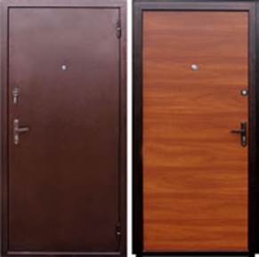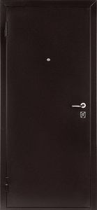 Полотно: Цельногнутое пологтно толщиной 50 мм, с сотовым наполнителем, усиленное двумя ребрами жесткости, утепленное минватой, толщина стали 1,2 мм. Противосъемные штыри препятствуют взлому двери при спиливании петель.