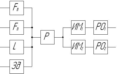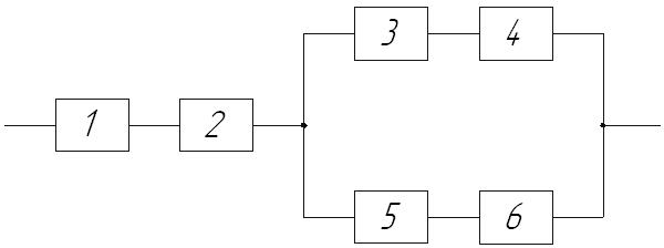 Р и с. 10. Параллельное соединение элементов Если отказ элемента независимо от его назначения вызывает отказ системы, то элемент соединяют последовательно. Если отказ системы возникает при отказе всех или части однотипных элементов, то такие элементы соединяют параллельно. Последовательное соединение элементов называют также основным, а параллельное – резервным. Кроме этого соединение элементов может быть смешанным, например как на рис.10.