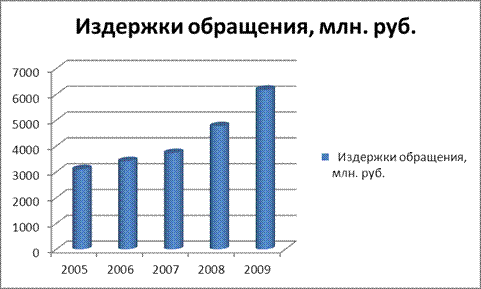 Рис. 3.1. Динамика издержек обращения ЧУП ГК «Орбита» за 2005 – 2009 гг.