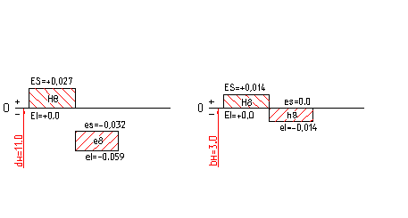 Дано:шлицевое соединение6х11х14, закалена втулка. 1). Принимаем способ центрирования шлицевого соединения-центрирование по внутреннему диаметру втулкиd. 2). Находим из таблицы ширину зуба- b= 3 мм. 3). Находим из таблицы рекомендуемые поля допусков и посадки для размеров шлицевого соединения: Для размераd = 11 Для размераb= 3