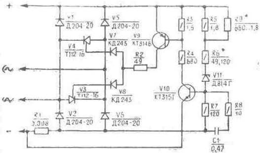 Рис. 31. Схема выпрямителя-регулятора напряжения БПВ 21-15 Во избежание нарушения теплового режима работы выпрямителя-регулятора периодически (не реже одного раза в шесть месяцев) необходимо очищать его щеткой от пыли и других загрязнений. Не допускается чистить металлическими предметами и нарушать заводскую пломбу в период гарантийного пробега мотоцикла. Установка зажигания Начальный угол опережения зажигания определен взаимным расположением датчика зажигания и ротора генератора, в процессе эксплуатации регулировке не подлежит. При работе двигателя система зажигания автоматически изменяет угол опережения зажигания в зависимости от оборотов коленчатого вала. Date: 2015-07-10; view: 405; Нарушение авторских прав |