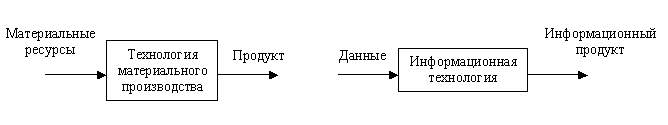 Рис. 3.10. Информационная технология как аналог технологии переработки материальных ресурсов Информация является одним из ценнейших ресурсов общества наряду с такими традиционными материальными видами ресурсов, как нефть, газ, полезные ископаемые и др., а значит, процесс ее переработки по аналогии с процессами переработки материальных ресурсов можно воспринимать как технологию. Тогда справедливо следующее определение. Информационная технология - процесс, использующий совокупность средств и методов сбора, обработки и передачи данных (первичной информации) для получения информации нового качества о состоянии объекта, процесса или явления (информационного продукта). Цель технологии материального производства - выпуск продукции, удовлетворяющей потребности человека или системы. Цель информационной технологии - производство информации для ее анализа человеком и принятия на его основе решения по выполнению какого-либо действия. Известно, что, применяя разные технологии к одному и тому же материальному ресурсу, можно получить разные изделия, продукты. То же самое будет справедливо и для технологии переработки информации. Пример 3.18. Для выполнения контрольной работы по математике каждый студент применяет свою технологию переработки первоначальной информации (исходных данных задач). Информационный продукт (результаты решения задач) будет зависеть от технологии решения, которую выберет студент. Обычно используется ручная информационная технология. Если же воспользоваться компьютерной информационное технологией, способной решать подобные задачи, то информационный продукт будет иметь уже иное качество. Таблица 3.3. Сопоставление основных компонентов технологий