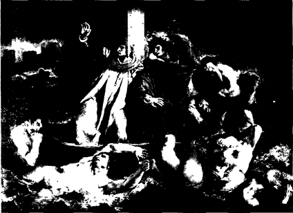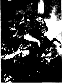 Зато следующее большое произведение — «Раненый кирасир, покидающий поле боя» (1814) потерпело полную неудачу, ибо многие увидели в фигуре воина, с трудом спускающегося со склона и еле удерживающего коня, определенный политический смысл — намек на разгром Наполеона в России, выражение того разочарования в политике Наполеона, которое испытывала французская молодежь. 1817 год Жерико проводит в Италии, где изучает искусство античности и Возрождения, перед которыми преклоняется и которые, как признавался сам художник, даже подавляют своим величием. Жерико многое сближало с классикой и классицизмом. Знаменательно, что не Энгр, любимый ученик Давида, навещал последнего в изгнании, а художник совершенно другого идейного лагеря, иных эстетических позиций — Жерико: в 1820 г. специально для свидания с главой классицистической школы он ездил в Брюссель. Ибо, как верно писал один из исследователей творчества Жерико, оба (Жерико и Давид.— Т. И.) были выразителями революционных тенденций, и это их сближало. Но они были выразителями этих тенденций в различные эпохи, и это обусловливало различие их идейно-художественных стремлений. Точный рисунок, четкий контур, пластичность форм, моделированных светотенью, а главное —тяготение к монументальному, эпическому, к образам широкого общественного звучания роднили Жерико с Давидом. Жерико настойчиво ищет героические образы в современности. События, происшедшие с французским кораблем «Медуза» летом 1816 г., дали Жерико сюжет, полный драматизма и привлекший внимание общественности. Фрегат «Медуза» потерпел крушение у берегов Сенегала. Из 140 человек, высадившихся на плот, лишь 15 полумертвецов подобрал бриг «Аргус» на двенадцатый день. Причину гибели усматривали в непрофессионализме капитана, получившего это место по протекции. Общественность, оппозиционно настроенная к правительству, обвинила последнее в коррупции. В итоге длительной работы Жерико создает гигантское полотно 7х5 м, на котором изображает немногих оставшихся на плоту людей в тот момент, когда они увидели на горизонте корабль. Среди них мертвые, сошедшие с ума, полуживые и те, кто в безумной надежде всматривается в эту далекую, едва различимую точку. От трупа, голова которого уже в воде, взгляд зрителя движется дальше к юноше, ничком упавшему на доски плота (натурой Жерико послужил Делакруа), к отцу, держащему на коленях мертвого сына и совершенно отрешенно глядящему вдаль, и затем к более активной группе — смотрящих на горизонт, венчаемой фигурой негра с красным платком в руке. Среди этих людей и подлинные портретные изображения — инженера Корреара, указывающего на корабль стоящему у мачты врачу Савинъи (оба — оставшиеся в живых очевидцы катастрофы).