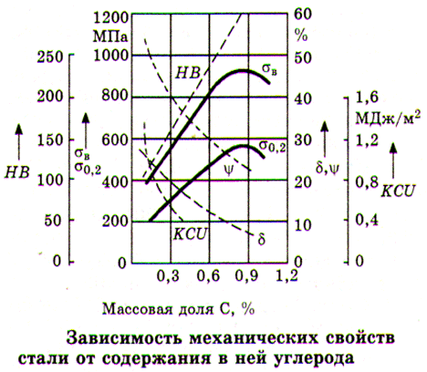 Стали содержат железо, углерод и примеси Si, Mn, P, S. По содержанию углерода различают стали: 1) Низкоуглеродистые (до 0,25 % С) – пластичны, малопрочны. Применяют для деталей не несущих больших нагрузок. 2) Среднеуглеродистые (0,25…0,6 % С) – прочные и вязкие – основной конструкционный материал. 3) Высокоуглеродистые (0,6…1,3 % С) - имеют высокую твёрдость, прочность и хрупкость. Применяют в основном как инструментальные.