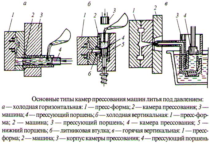 3) Литьё под давлением - применяют при массовом изготовлении деталей из сплавов цветных металлов. Литьё точное, не нуждается в механической обработке (детали автомашин, паровой и водяной аппаратуры и т.п.)