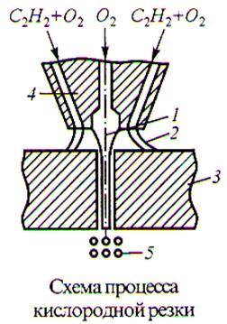 б) сварку давлением – нагрев мест соединения выполняют специальными многопламенными горелками до пластичного состояния, а затем детали сжимают; в) кислородную резку – основана на способности металлов гореть в струе кислорода. Резак – представляет собой специальную газовую горелку с отдельной подачей кислорода.
