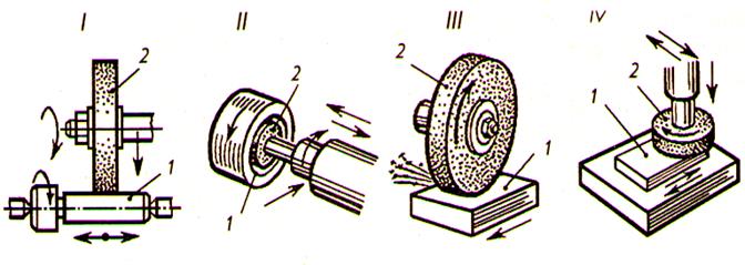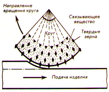 5) Шлифование – обработка поверхностей абразивными инструментами. Применяют и для обдирочных работ и как отделочную операцию. Виды работ при шлифовании: плоское, круглое наружнее, круглое внутреннее, Абразивные инструменты – самозатачивающиеся. Применяют абразивы естественные и искусственные: а) электрокорунд – кристаллический оксид алюминия; б) карборунд – карбид кремния; в) карбид бора; г)алмазы (естественные и искусственные). Виды связки: керамическая, вулканитовая, бакелитовая.