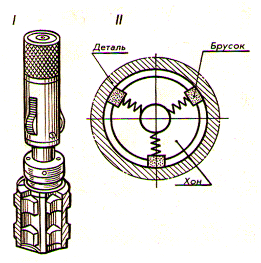 6) Отделочные операции: а) хонингование – применяется для обработки стенок отверстий (цилиндры ДВС);