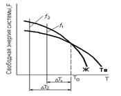 При наличии фазового перехода из твердого в жидкое состояние, и наоборот, эти кривые должны пересекаться. Точка пересечения соответствует равенству свободных энергий твердой и жидкой фазы, что говорит о возможности сосуществования в металле при данных условиях как твердых, так и жидких фаз. Физический смысл температуры Т0, при которой наблюдается равенство свободных энергий твердой и жидкой фазы выражается как температура фазового равновесия: плавление-кристаллизация. При температуре Т1 > Т0 запас свободной энергии жидкой фазы меньше, чем твердой. В этих условиях устойчивой фазой будет жидкость. При понижении температуры ниже Т0 меньшей энергией обладает твердая фаза, которая и становится стабильной в данных условиях. Однако изучение кривых охлаждения реальных металлов показывает, что затвердевание начинается не при температуре Т0 , а при ТS < Т0 (рисунок 2.2).