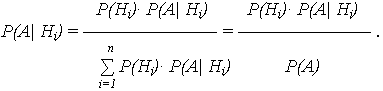 Если до опыта вероятности гипотез H1, H2, … Hn были равны P(H1), P(H2), …, P(Hn), а в результате опыта произошло событие А, то новые (условные) вероятности гипотез вычисляются: