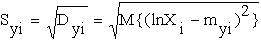 Матожидание my(t) и СКО Sy(t) линеаризованной путем логарифмирования функции (11) можно получить, используя числовые характеристики случайной скорости V: mv' и Sv'. Проводя аналогичные, как для функции (10), преобразования, получаем числовые характеристики модели (11) изменения логарифма ОП lnX(t) = Y(t):