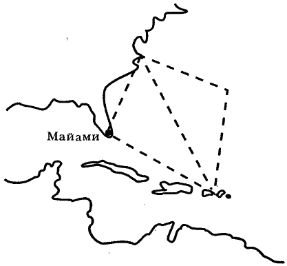 Стандартный треугольник впервые начертил журналист Уильям Гаддис. А Айван Сандерсон разработал теорию «Подлых водоворотов». Его «море проклятых», то есть воды Бермуд, лежит севернее стандартного треугольника. Но об этом мы поговорим позднее. Поэтому, когда вы читаете о событиях в Бермудском треугольнике, сначала нужно сверить карты: ведь «треугольник» может оказаться весьма растянутым в зависимости от точки зрения автора. Но обычно имеется в виду именно треугольник. Если нанести на карту странные исчезновения судов и самолетов, то именно из этого района поступали последние сведения о них. И чем ближе к треугольнику, тем гуще плотность несчастных случаев.
