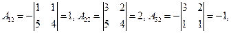 2) Находим алгебраические дополнения элементов определителя матрицы А.