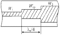 Рис. 2.14. Полосковый четвертьволновый согласующий трансформатор На рис. 2.14 показана топология четвертьволнового трансформатора в полосковом исполнении.