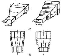 Рис.2.13. Четвертьволновые трансформаторы в волноводном исполнении для согласования волноводов с различным диэлектрическим заполнением (а) и с различными размерами узких (б) и широких (в) стенок