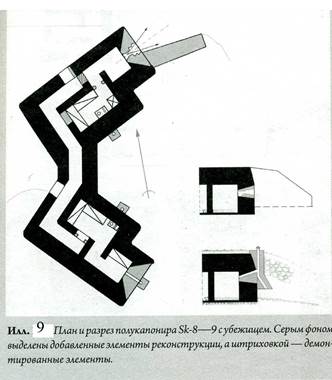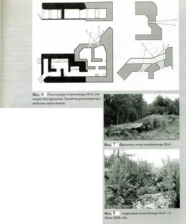 ДОТ Sk-8-9. Первоначальное сооружениесостояло из двух бункеров. Дальний бункер можно классифицировать как двухамбразурный ДОТ. Работы по модернизации завершить не успели.