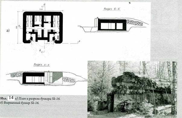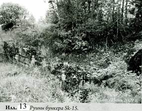 ДОТ Sk-16. Типовое бетонное сооружение постройки 1920-х на 22 человека. Имело 2 амбразуры для ручных пулемётов.