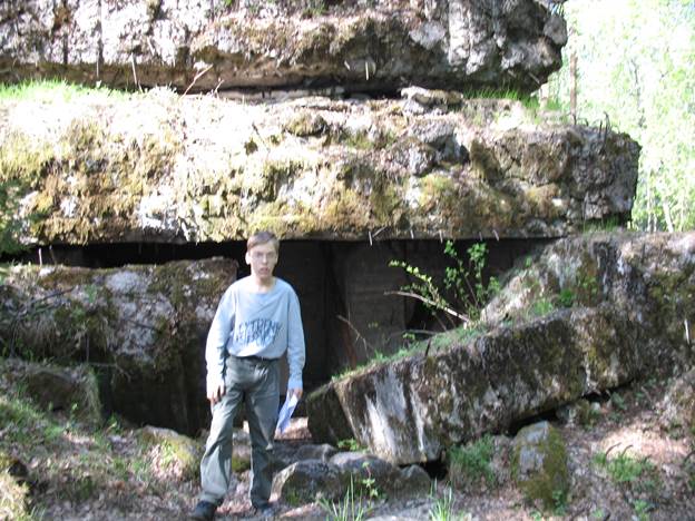 На снимке фундамент ДОТ и проём, похожий на дверной. Сам ДОТ разрушен.