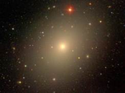 Гигантская эллиптическая галактика в окружении нескольких спиральных галактик