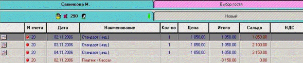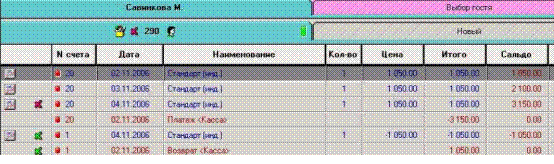 ЛАБОРАТОРНАЯ РАБОТА №6 ВОЗВРАТ ДЕНЕГ Цель работы: научиться выполнять возврат денег за невостребованное проживание, денег при переселении в другой номер, части авансового платежа, за не предоставленные отелем дополнительные услуги. Возврат денег за невостребованное проживание В ситуации, когда гость оплатил свое проживание в полном объеме, но вынужден по каким-то причинам выехать из отеля раньше намеченного срока, отель должен оформить возврат денег и произвести выплату гостю невостребованного им проживания за N суток. Для оформления возврата денег необходимо зайти в счет гостя. Для этого щелкните правой клавишей мыши по резервированию на Плане комнат и в меню выберите пункт Счет или нажмите кнопку Счет в карточке гостя. Пример. Гость Савинкова М. поселилась в номере категории «люкс» на трое суток и при заезде полностью оплатила проживание.