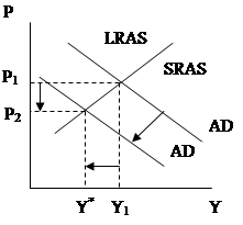 | Сдерживающая бюджетно-налоговая политика (фискальная рестрикция) имеет своей целью ограничение циклического подъема экономики и предполагает снижение госрасходов G, увеличение налогов Т или комбинирование этих мер направленных на снижение деловой активности и борьбы с инфляцией. В краткосрочной перспективе эти меры позволяют снизить инфляцию спроса ценой роста безработицы и спада производства. В более долгом периоде растущий налоговый клин может послужить основой для спада совокупного предложения и развертывания механизма стагфляции, особенно в том случае, когда сокращение государственных расходов осуществляется пропорционально по всем статьям бюджета и не создается приоритетов в пользу государственных инвестиций в инфраструктуру рынка труда.