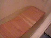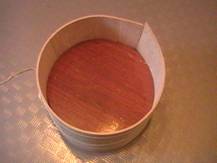 Способ состоит в том, чтобы согнуть фанеру целиком, но возникает опасность излома. Но с этим можно бороться. Вспомнив, что дерево становиться более мягкое при обработке его водяным паром, воспользуемся этим фактом. Паром пользоваться я не рекомендую в домашних условиях - это слишком опасно и может превести к страшным ожогам, я просто предложу взамен горячую воду. (Тем более при использовании горячей воды с температурой 40*-60*С уменьшается шанс расслоения фанеры, который наверняка бы случился при водяном паре или воде в 90*-100*С) Наливаем в ванную горячую воду, погружаем лист фанеры в воду и ждем, ждем достаточно долгое время, я погружал на ночь, но не забывайте, что горячая вода достаточно быстро остывает и её придется доливать. По истечению времени достаньте лист фанеры, возьмите крепкую веревку и начинайте аккуратно сгибать лист, фиксируя каждое положение веревкой. - Во-первых, можно сделать распорки и расставить их, как спицы у велосипедного колеса. - Во-вторых, я бы рекомендовал сделать распорку-диск из фанеры или ДСП. Выпилить его сложно, но можно. - Не забывайте, что после всего этого цилиндр нужно погружать углом в горячую воду. При закруглении угла этап работы с фанерой заканчивается. Следующий этап ДВП.