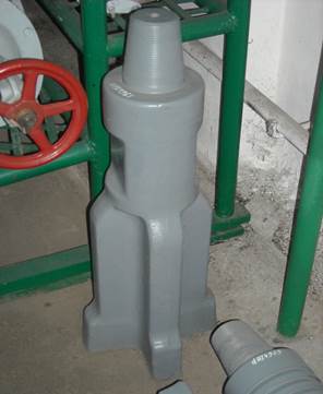 Рис.1.5. Хрестове долото. Долота використовують, в основному, трьох типів - плоскі, двотаврові, округляючі. Порівняно рідко використовуються зубильні i хрестові долота. Долота плоскі призначені для буріння м'яких порід. Двотаврові долота призначені для буріння порід м'яких i середньої твердості. Вони мають широке, але порівняно тонке лезо (рис. 4.3 б). Зубильні важкі долота застосовують для роботи в твердих породах. Xpecтовi долота застосовують для роботи в твердих тріщинуватих i у валунних відкладеннях (рис.4.3г). Округляючі долота служать для зрізання виступів, які залишаються на стінках свердловин при 6ypiннi в твердих породах i для округлення свердловин (рис. 4.3 в). Розсувна штанга (рис. 4.4) служить для підриву бурового снаряду при бурінні у в'язких i тріщинуватих породах. Складається з двох повздовжніх частин, які рухаються одна в одній подібно ланкам ланцюга. Частини розсуваються на 250 мм. Тобто, в перший момент підняття бурового снаряду спочатку рухається верхня частина ножиць разом iз канатним замком, набирає певну інерцію i, коли доходить до граничної точки, вдаряє по нижній частині, чим підвищує силу вириву снаряду із породи. Для з'єднання канату з буровим снарядом застосовують канатні замки. Найбільш зручний в poбoтi канатний замок з обертовою втулкою (рис.4.5.). Закріплюється канат таким чином.