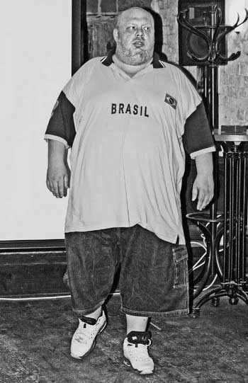 На мой взгляд, Крылов почти не изменился: огромные бесформенные джинсы, яркая куртка, утепленная бейсболка и ботинки на толстой подошве, носящие в народе некорректное название «говнодавы». Мы долго болтали, вспоминая старые времена, и я сделал кое‑какие заметки. А потом, уже летом 2010 года, мы встретились снова. Сергей, в безразмерной футболке сборной Бразилии с пятым номером, выглядел еще крупнее, чем зимой, на глаз весил килограммов сто семьдесят пять – сто восемьдесят. Я попросил его рассказать о том, как складывались у него отношения с лишним весом. И услышал интересную, но не самую веселую историю человека, чувствующего себя абсолютно одиноким, несмотря на то, что его знают в лицо миллионы людей. «Началось вообще‑то все с моего рождения. Я ребенок, появившийся на свет переношенным. Дата моего зачатия известна абсолютно точно – первая брачная ночь моих родителей. Так что путем несложных вычислений получаем, что в утробе матери я провел девять месяцев и восемнадцать дней. Ну и вес у меня был соответствующий – пять килограммов двести граммов. Правда, я начал худеть уже в роддоме – покинул его с массой четыре восемьсот. Все рассказы обо мне маленьком, которые я слышал от бабушки Ирины Константиновны, начинались с того, что в роддоме на кормление нянечки обычно несли по два ребенка, а меня тащили одного – таким я был тяжелым. Материнского молока вволю мне попить не удалось, так что я вскармливался искусственно. А кормили меня более чем основательно. До пяти лет я ежедневно выпивал поллитровую баночку манной каши (это помимо остальной еды). Так что обвинений в том, что я «мало каши ел», не боюсь. Я называл кашу короткой аббревиатурой «аа» и требовал ее регулярно. До трех лет я не разговаривал. Сейчас‑то об этом вспоминается с юмором, а вот тогда моим родными пришлось несладко. Они беспокоились, водили меня к логопеду… Я вспоминаю по этому поводу старинный английский анекдот. «В одной семье маленький мальчик не разговаривал до семи лет. Все уже было привыкли к этому, как вдруг во время обеда он потянул носом воздух и сказал: «А каша‑то подгорела!» Все тут же кинулись к нему: «Джон, как, ты можешь говорить? Почему же ты раньше молчал?» На что мальчик задумчиво ответил: «А что говорить‑то? До этого все нормально было!» Скорее всего, из‑за родовой травмы у меня оказались повреждены некоторые участки мозга. Я, к примеру, не вожу сам машину и не занимаю официальных руководящих постов, тем более с финансовой ответственностью. Это – следствие того, еще детского, диагноза. Но на все остальное диагноз не повлиял. Правда, был я мальчиком довольно пухленьким, что в провинции (а вырос я в городе Туле) могло вызвать насмешки у сверстников. Однако как‑то не вызывало. Настоящих хулиганов на нашей улице не водилось, и я, чувствуя себя спокойно, очень быстро привык к неудобствам и преимуществам своего тела. При большом объеме и весе я был необычайно подвижным, и это, несмотря на небольшой рост, дало мне возможность неплохо играть в футбол и баскетбол. К тому же я играл на гитаре и пел, тем самым сразу завоевав популярность среди одноклассников. И одноклассниц тоже. На мои габариты особого внимания не обращали, все к ним просто привыкли. Наверное, я один к тому времени понимал, что мне нужно научиться использовать свое тело по максимуму. Нет, не заниматься спор