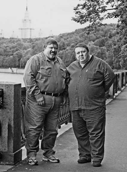 Когда мы только начинали обсуждать проект, Алексей с пристрастием допрашивал меня об отношении к спорту. Пришлось ему признаться, что к спорту я вообще никак не отношусь. Нет, конечно, в детстве, как все, играл в дворовый футбол, пробовал заниматься борьбой, даже фехтованием, но все это закончилось на начальном уровне. Единственное, что мне это дало, – неплохую (особенно при моем весе и объеме) растяжку и способность пластично двигаться. Сейчас мои физические занятия ограничиваются обычно небольшой разминкой дома, которую я провожу не совсем регулярно. Правда, мне подарили членскую карточку фитнес‑клуба «Пойнт», который находится в Конном переулке – в квартале от моего дома, но я ходил туда всего пару раз. Времени не было, да и особого желания тоже. Но в ходе нового этапа похудения пришлось мне посетить вместе с ведущим проекта и фотографом Милой Стриж этот клуб. Ну, уж тут Алексей надо мной издевался, как мог. Для начала стал учить меня, как нужно разминаться. Оказывается, это целая наука. Нам, большим людям, вообще без разминки никаких упражнений, кроме, разве что, ходьбы на беговой дорожке, делать нельзя. И нужно минут двадцать прорабатывать каждый сустав, каждую мышцу, чтобы гигантский вес (а во мне было на тот момент сто шестьдесят пять килограммов) не повредил связки, хрящи, кости или мышцы. Так что я всем «большим» рекомендую комплекс, который мы честно проделали вместе: