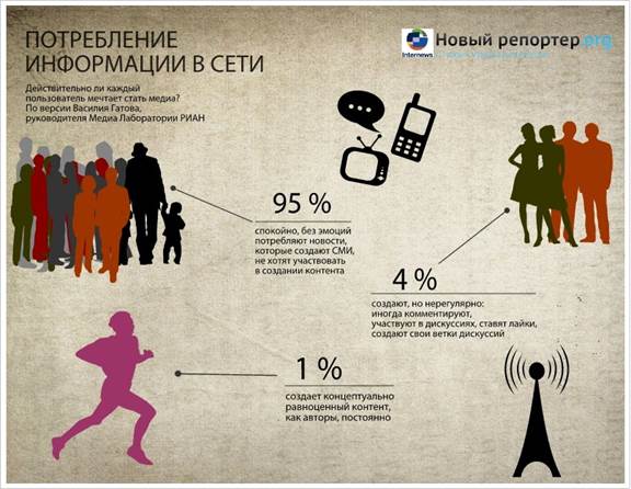 На этой картинке показано что довольно малый процент населения занимаеться чемто полезным большенство , а просто потребляют информацию
