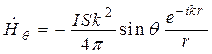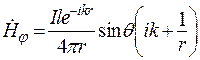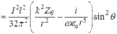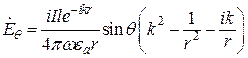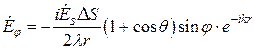 При выводе (12.11) нигде не использовано приближение дальней зоны. Поскольку размеры источника излучения много меньше длины волны, ЭМП любой сложной антенны можно представить как суперпозицию таких излучателей. Учитывая, что I = iωq, уравнение (12.11) можно переписать так: