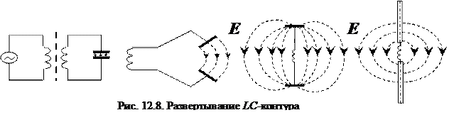 Аналогичным образом можно описать превращение плоского конденсатора в вибраторную антенну (рис. 12.8).