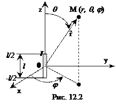 Электрический диполь. Вид выражений (12.1) и (12.3) указывает на то, что ЭМП антенны можно представить как сумму полей ее отдельных частей с учетом взаимодействия распределений токов на каждой из них. Эти излучатели выбирают так, чтобы их ЭМП можно было сравнительно просто рассчитать, а также реально использовать как простейшие антенны. Упрощение в расчетах достигается тем, что некоторые размеры излучателей выбираются много меньше длины волны [36].
