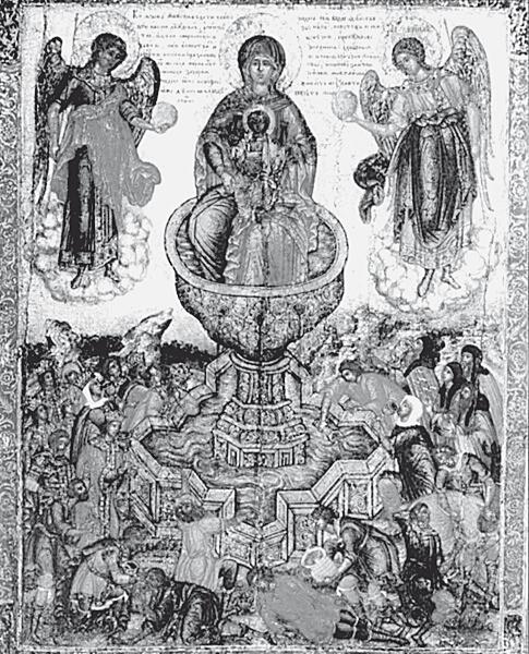 В окрестностях Константинополя, на расстоянии семи километров от центра города, находилась небольшая, но прекрасная роща, в которой росли кипарисы и платаны. С древних времен чудесное место это, называемое Балуклией, посвящалось Пресвятой Богородице. Посреди него находился источник, от которого благодатью Божьей совершалось много чудес. Место это располагалось за пределами древней городской стены, которую не раз разрушали, причем русский князь Олег даже повесил на ней свой щит. Но долгое время место это оставалось неухоженным, отчего источник засорился, а потом и само место заглохло от множества кустарников и накопившейся тины, которая препятствовала течению воды. Однажды проходивший здесь воин Лев Макелл, воевода императора Маркиана, увидел слепого человека, блуждавшего по непроходимым местам и не знавшего куда идти. Он подал слепцу руку и повел его по тропинке, но тот от сильного утомления и дневного зноя очень хотел пить. Так они приблизились к густому лесу, но слепец от жажды так ослаб, что не мог даже стоять. Поэтому Лев посадил его в тень, а сам отправился на поиски воды. Однако он долго не мог найти хоть какого‑нибудь источника и, опечаленный, уже решил вернуться к слепому. Но тут в вышине раздался голос: «Лев, не печалься! Вода, которую ты ищешь, близко – обернись назад и отыщешь ее». Лев вернулся, но как будто и сам сделался слепым: долго осматривался кругом, но воды не находил. И тут он вновь услышал тихий и приятный голос, не только называющий его по имени, но и предсказывающий царское достоинство: «Император Лев! Войди в эту густую и тенистую рощу и найдешь воду; почерпни этой воды и утоли жажду слепого. А потом помажь илом его глаза. Кто Я, здесь живущая, ты скоро узнаешь. Устрой Мне на этом месте храм, в нем Я буду внимать молитвам и подавать желаемое всем, с усердием и верой сюда притекающим. Ничто не сильно будет противиться Моей власти: болезнь ли неисцелимая, демонское ли наваждение или что другое – только бы просили Меня благоговейно».