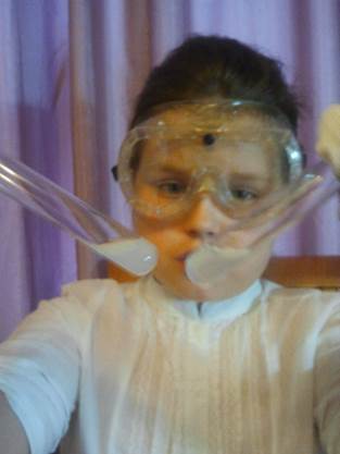 Для эксперимента нам понадобилось: - Натрий фосфорнокислый - Кальций хлористый - 10% раствор соляной кислоты - Пробирки – 2 шт. - Штатив для пробирок - Ложечка - Вода - Шприц - Защитные очки и перчатки В целях безопасности перед началом проведения эксперимента я одела защитные очки и перчатки, что бы химические вещества случайно не попали на открытые участки тела и в глаза.