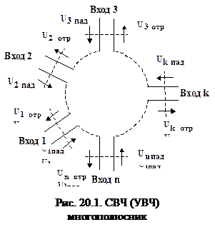 Элементы этой матрицы (S-параметры) принято называть так: S11 и S22 - коэффициент отражения от входа и выхода соответственно; S21 - коэффициент прямой передачи; S12 - коэффициент обратной передачи. В случае взаимного устройства без потерь у матрицы (20.7) будет только один независимый элемент. Связывая S-параметры (20.7) между собой с помощью (20.5) и (20.6), получим