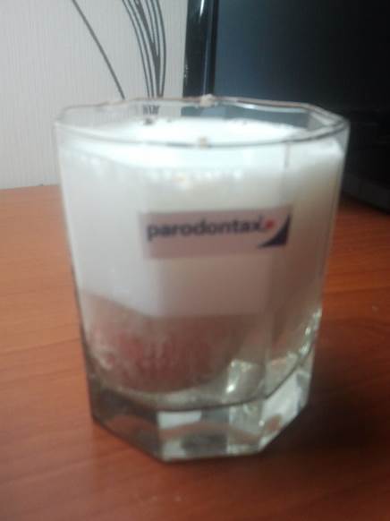 В качестве модели зубной эмали, как и во втором эксперименте, мы использовали сырые яйца. Для эксперимента нам понадобилось: - сырые куриные яйца – 6 шт. - зубная паста (Parodontax, Colgete, Glister, Lacalut, Biend-a-med, Splat) - зубная щетка - 9% уксус - стаканы – 6шт. - перчатки - тарелки – 6шт. Я почистила разной зубной пастой каждое яйцо по 30 секунд. Поместила яйца в пустые стаканы и залила уксусом