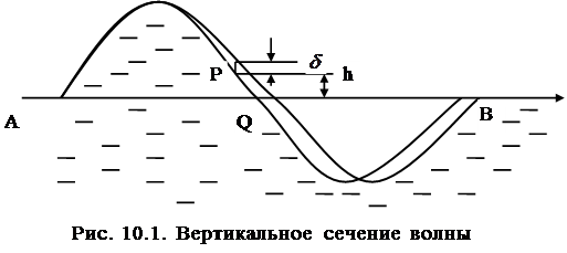 С ростом длины волны Влияние поверхностного натяжения на величину потен-циальной энергии можно учесть следующим образом. Рассмотрим вертикальное сечение волны, приведенное на рис. 10.1.
