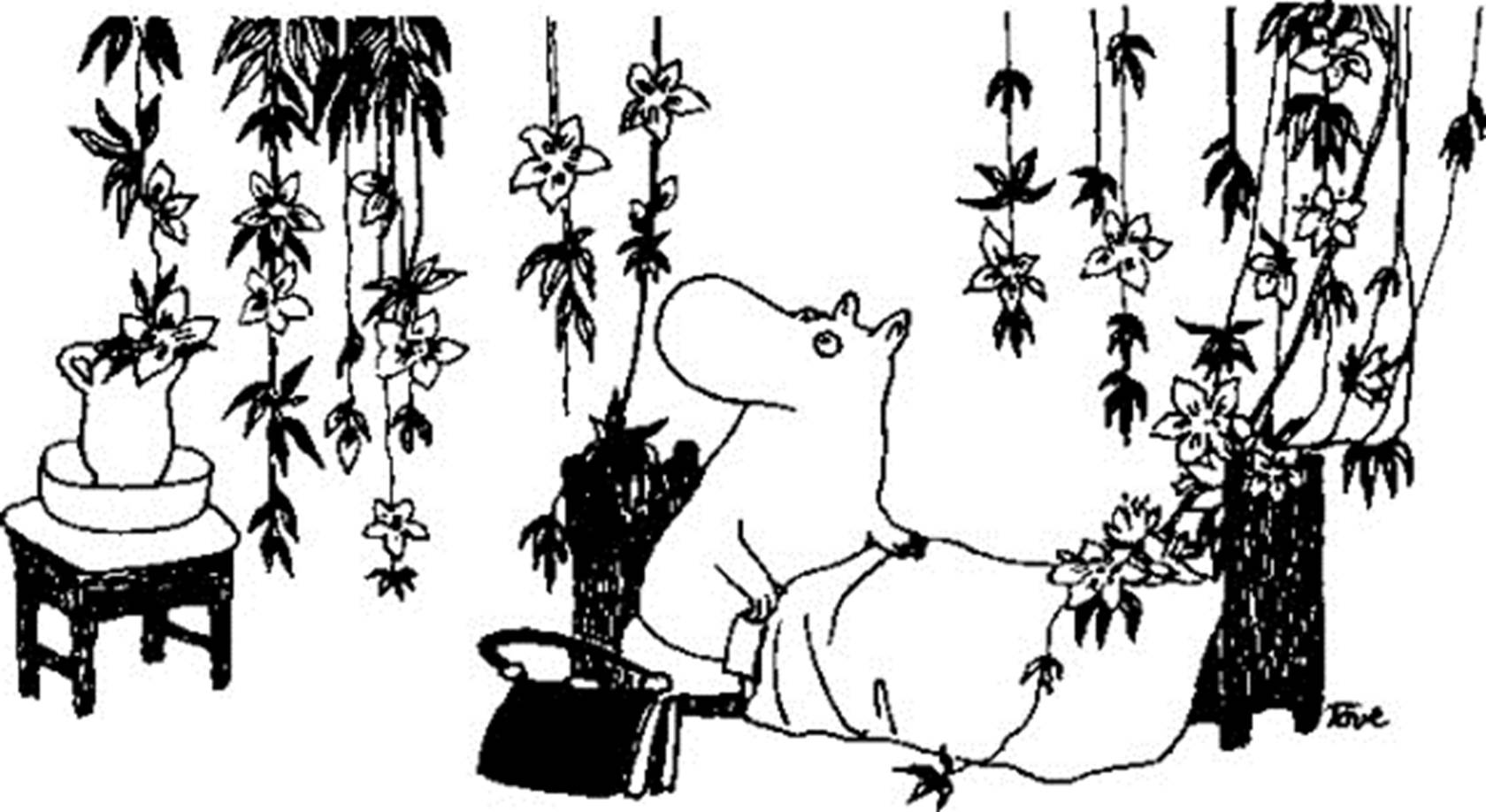 Було це десь наприкінці липня. Над Долиною Мумі-тролів зависла спека. Навіть мухи не мали сили дзижчати. Знемагали запилені дерева, річка обміліла й ледь дзюркотіла спраглими дощу левадами. Вода вже не ставала морсом у чарівному капелюсі (якого, зрештою, перепросили й поставили на комоді перед дзеркалом). День у день сонце пражило Долину, сховану поміж узгір’ями. Уся дрібна живність поховалася по своїх прохолодних земляних нірках, замовкли птахи. Спека вплинула й на друзів Мумі-троля, вони тинялися один поза одного й раз у раз сварилися. – Мамо! – попросив якось Мумі-троль. – Придумай нам якесь заняття. Так гаряче, що ми скоро перегриземося… – Я вже це зауважила, любі дітоньки, і мушу зізнатися, що радо позбулась би вас на якийсь час… – мовила Мама. – Може, вам ліпше перебратися до печери на кілька днів? Ви б цілими днями ніжилися в морі й нікому не заважали… – Можна там навіть заночувати? – зрадів Мумі-троль. – Звичайно! А додому повертайтеся лише тоді, як між вами запанує лад. Як цікаво було оселитися в печері навсправжки. Посеред піщаної долівки друзі поставили гасову лампу. Кожен випорпав собі зручну ямку й вимостив її для спання. Харч – пудинг з родзинками, гарбузовий мус, банани, марципанові тістечка-поросята, кукурудзяні качани, а ще оладки на завтрашній сніданок – розділили на шість однакових порцій. Надвечір звіявся легенький вітерець і став гуляти понад безлюдним берегом. Сонце червоно заходило, виповнюючи печеру теплим промінням. Нюхмумрик награвав вечірні мелодії, Хропся лежала, поклавши кучеряву голівку на коліна Мумі-тролеві. Друзів розморило від ситості після пудингу з родзинками, але коли над морем опустилися сутінки, всім стало якось не по собі. – Це я колись знайшов печеру, – бовкнув ні сіло ні впало Чмих. Ніхто навіть бровою не повів – що, мовляв, чули про це сотні разів. – Хочете послухати страшну оповідь? – запитав Нюхмумрик, запалюючи лампу. – Дуже страшну? – поцікавився Гемуль. – Десь таку, як звідси до входу або й ще трохи далі, – сказав Нюхмумрик. – Якщо таке пояснення тобі щось каже… – Зовсім нічого, – відбуркнув Гемуль. – Починай, а я тобі скажу, коли стане страшно. – Гаразд, – погодився Нюхмумрик. – Цю байку розповіла мені одна сорока, коли я був ще малий. Слухайте! На краю світу стоїть височенна гора. Така височенна, що аж паморочиться в голові, чорна як сажа і гладенька мов шовк. Вона стрімко уривається у бездонне провалля, а хмари стеляться біля її підніжжя. На самому вершечку гори височить дім Чарівника. Ось такий, – і Нюхмумрик намалював на піску палац Чарівника. – А чому без вікон? – запитав Чмих. – Немає там ні вікон, ні дверей, бо Чарівник завжди прилітає додому по повітрю верхи на чорній пантері. Ночами він літає світом і збирає рубіни. – Що ти кажеш?! – нашорошив вуха Чмих. – Рубіни! А звідки він їх бере? – Чарівник може обернутися на будь-кого. Йому завиграшки просотатися під землю чи опуститися на морське дно, де лежать приховані скарби. – І що він робить з тою купою коштовного каміння? – заздрісно запитав Чмих. – Нічого. Лише колекціонує. Як наш Гемуль рослини. – Ти щось казав? – зірвався спросоння Гемуль. – Я саме розповідав, що рубінів у Чарівника не злічити, – пояснив Нюхмумрик. – Одні лежать великими купами, інші – вправлені у стіни й світяться, наче очі диких звірів. Дім Чарівника не має даху, т