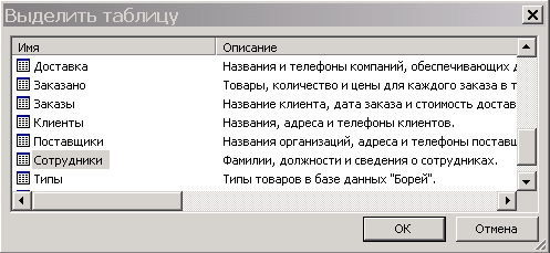 2-шi сурет. «Боей» ДҚтың кестелерін таңдау терезесi.