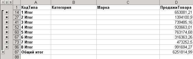 8-шi сурет.Кодтипа өрiс бойынша қорытындылардың кестесi.