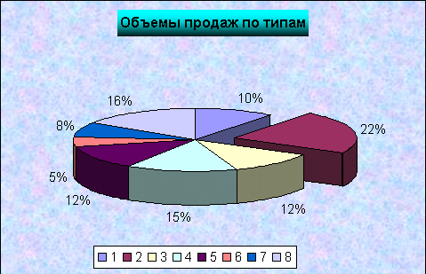 9-шы сурет.Түрлер бойынша сату көлемдерi диаграмма.