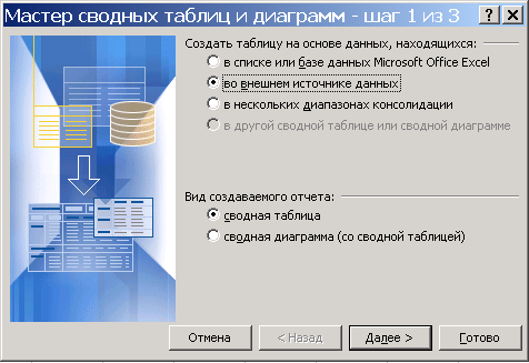 10-шi сурет. 1-шi адым. Жинақ кестелер және диаграммалардың ұстасы. 1.Батырма бойынша ұсталар екiншi адымда мәлiметтердi алуға шертiңiз.