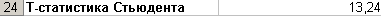 4. Корреляция коэфициентінің мағыналылығын анықтаңыз. Осы мақсатта екі гипотеза қарастырылады. Негізгісі Н0: rxy=0 және альтернативалық Н1: rxy≠0. Н0 гипотезасын тексеру үшін Стьюденттің t – статистикасын жоғарыда келтірілген С24 ұяшықында көрсетілгендей етіп есептеңіз. Біздің есептеулеріміз бойынша юостандық деңгейлерінің саны ν = n-2=20-2 = 18 және формула келесідей болады: =C23*КОРЕНЬ(20-2)/КОРЕНЬ(1-(C23*C23)) 5. Алынған мәндерді Стьюденттің tν,α орналастыру критикалық мәнімен салыстырыңыз. (ν =18 болған жағдайда және мүмкін болған жағдайда α = 0,05, tν,α,табл = 1,734). Зерттелініп отырған ұлғаюлар байланысының арасында қорытынды жасаңыз.