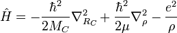 Гамільтоніан До складу атома водню входить ядро з масою M і зарядом +e та електрон із зарядом -e. Взаємодія між ними — кулонівське притягання. Гамільтоніан атома водню має вигляд [1]